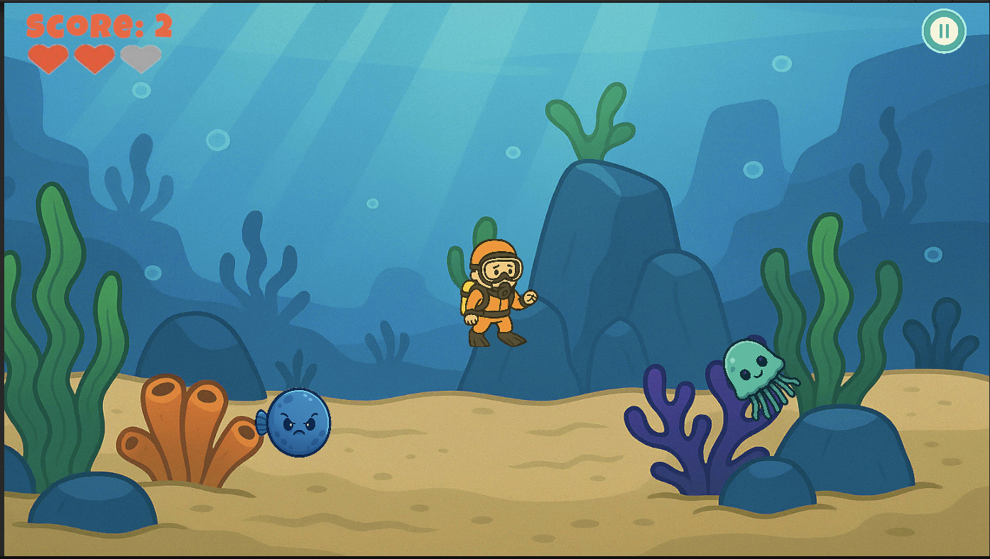 - ๐ Underwater โ jellyfish, and lurking sea creatures in a colorful reef.