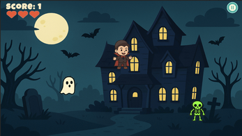 - ๐ป Haunted House โ Floating ghosts, cursed skeleton, eerie purple skies.
